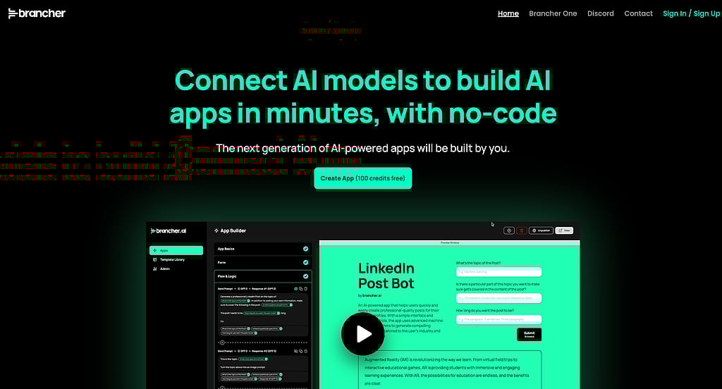آخرین پلتفرم در فهرست ما Brancher است؛ ابزاری که نه‌تنها برای ساخت سریع اپ مناسب است، بلکه تمرکز ویژه‌ای روی درآمدزایی دارد.