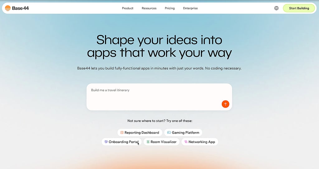 Base44 به کاربران اجازه می‌دهد تنها با توصیف ساده‌ی ایده‌ی خود با کلمات معمولی، اپلیکیشن‌شان را بسازند. مثلاً بنویسی: